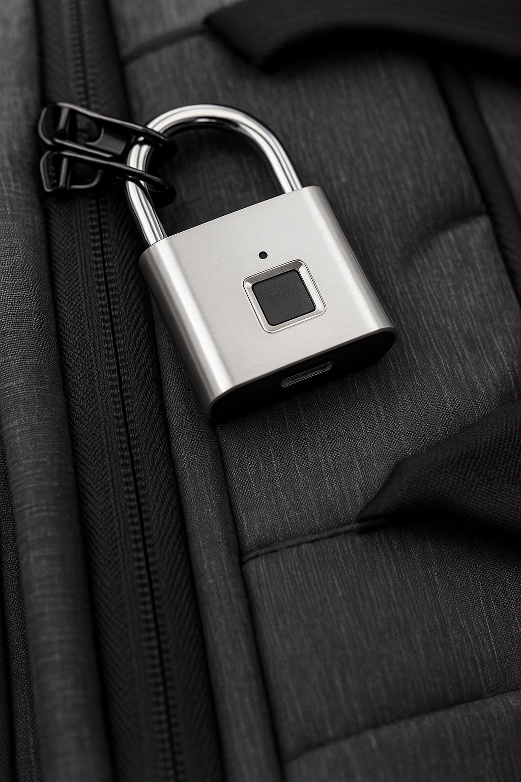 Travel with peace of mind. This mini biometric padlock unlocks instantly with your fingerprint—no keys, no codes. Designed with a durable zinc alloy body and stainless-steel shackle, it’s both strong and waterproof.Rechargeable, quick to unlock, and stylishly modern—security has never been this simple.